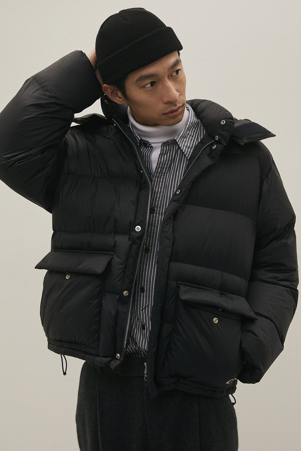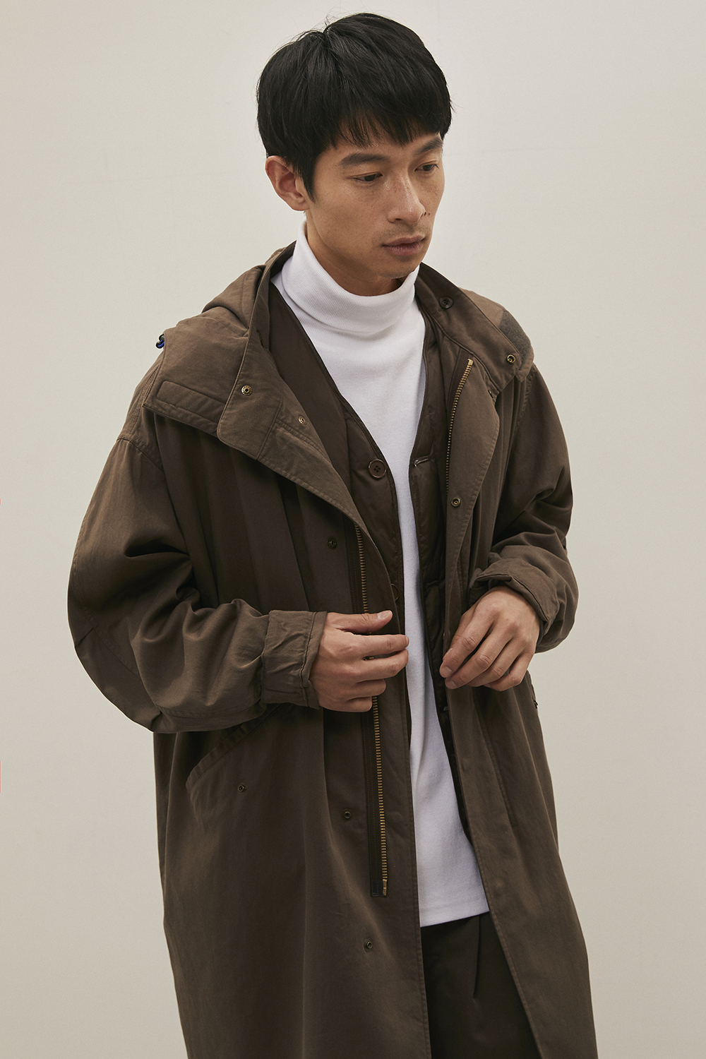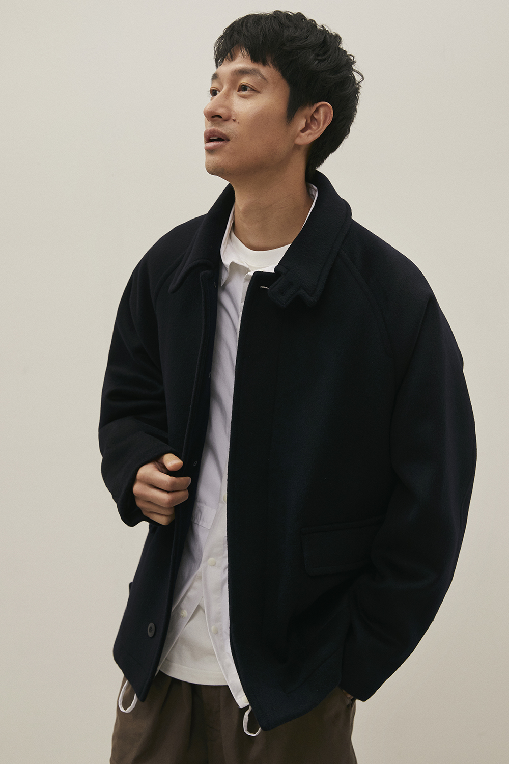 가장 기본이 되는 우수한 원단과 꼼꼼한 봉제를 바탕으로 하여 담백하지만 깊이감이 있고, 조금은 즐겁기도 한 옷을 만들고자 하는 콘셉트를 매 시즌 이어가고 있습니다. 이번 컬렉션에서는 직접 기획하고 대구에서 생산한 면, 나일론, 폴리에스터 등이 주를 이루며, 세계적으로 저명한 트위드 울 원단 브랜드인 Harris Tweed(해리스 트위드), 일본 산의 고밀도 코듀로이 원단 등을 사용하며 디자인에 적합한 것을 선별하여 보다 다양하지만 일관성이 있는 컬렉션을 완성하고자 했습니다.