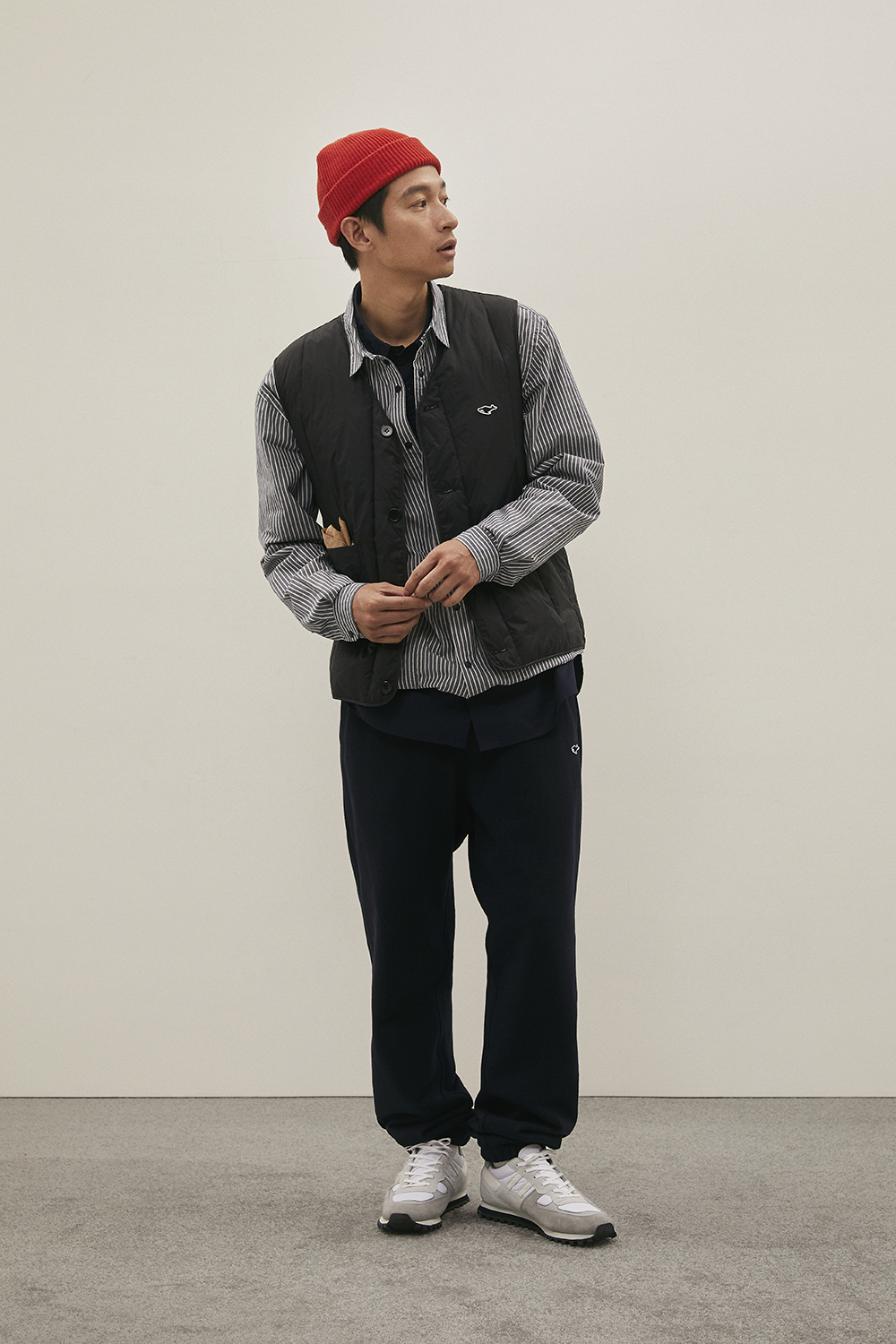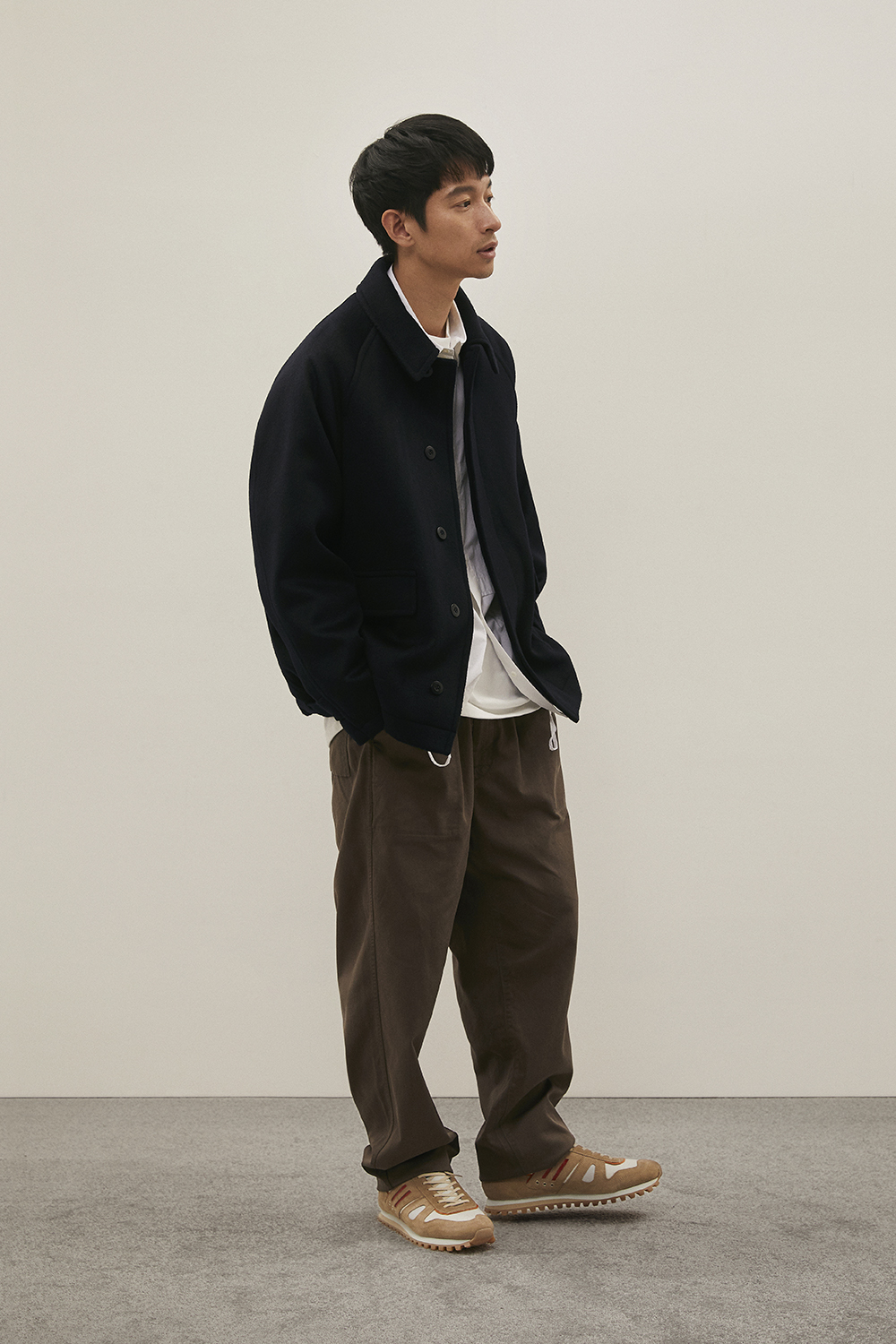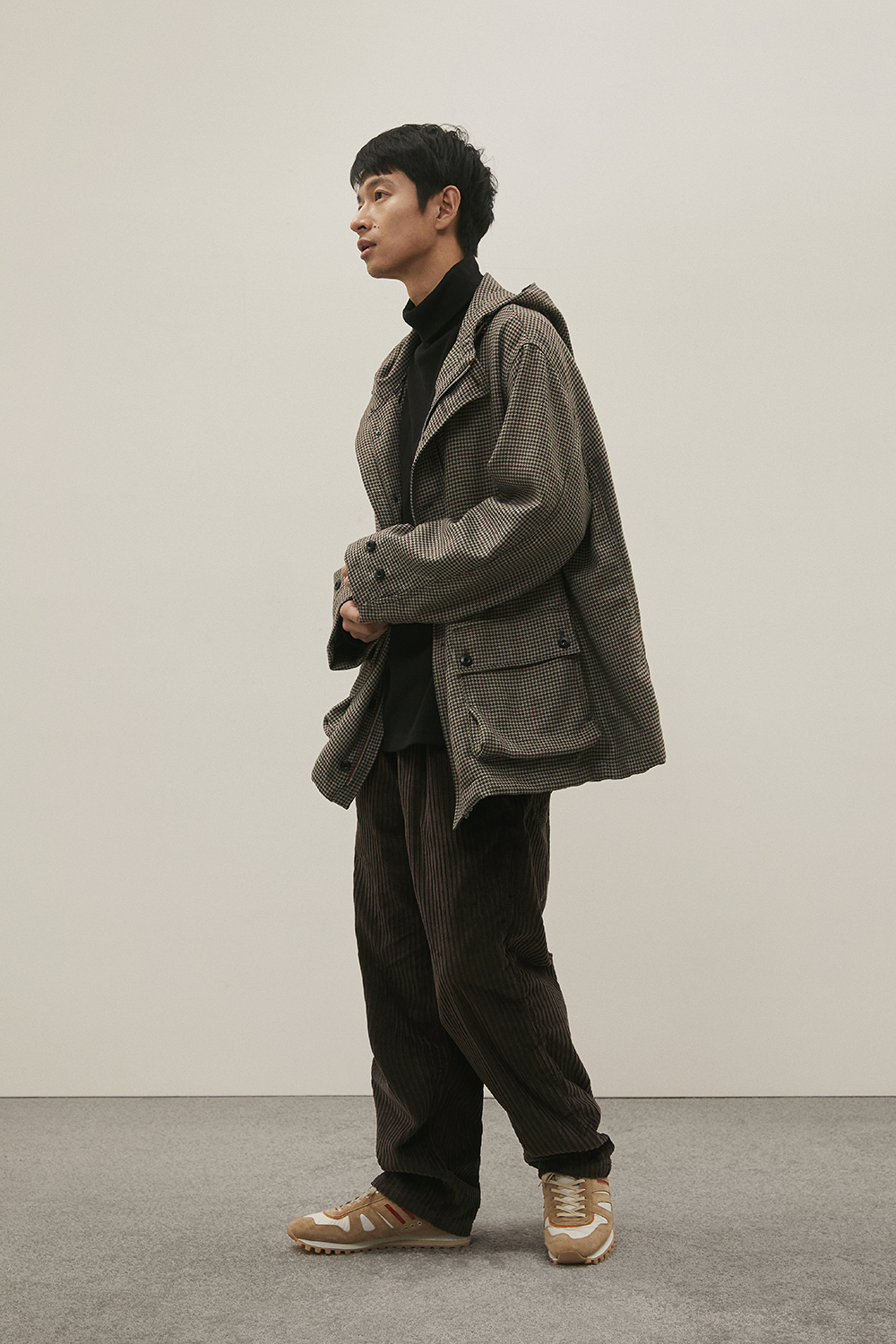 가장 기본이 되는 우수한 원단과 꼼꼼한 봉제를 바탕으로 하여 담백하지만 깊이감이 있고, 조금은 즐겁기도 한 옷을 만들고자 하는 콘셉트를 매 시즌 이어가고 있습니다. 이번 컬렉션에서는 직접 기획하고 대구에서 생산한 면, 나일론, 폴리에스터 등이 주를 이루며, 세계적으로 저명한 트위드 울 원단 브랜드인 Harris Tweed(해리스 트위드), 일본 산의 고밀도 코듀로이 원단 등을 사용하며 디자인에 적합한 것을 선별하여 보다 다양하지만 일관성이 있는 컬렉션을 완성하고자 했습니다.