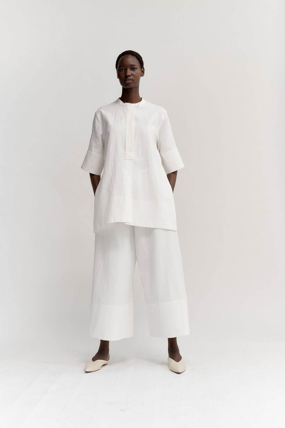 슬로우스테디클럽에서는 베이직한 아이템이지만 STUDIO NICHOLSON(스튜디오 니콜슨) 특유의 대담한 패턴으로 활력이 느껴지는 제품들을 소개합니다. 드롭 숄더 디테일로 편안함을 극대화한 재킷, 셔츠 그리고 브랜드 특유의 볼륨감이 느껴지는 구조적인 실루엣의 크롭 팬츠 등 편하고, 오랫동안 손이 갈 제품들을 만나보세요. 추후 업데이트 될 STUDIO NICHOLSON(스튜디오 니콜슨)의 2차 드롭 상품에도 많은 기대 부탁드립니다. 감사합니다.