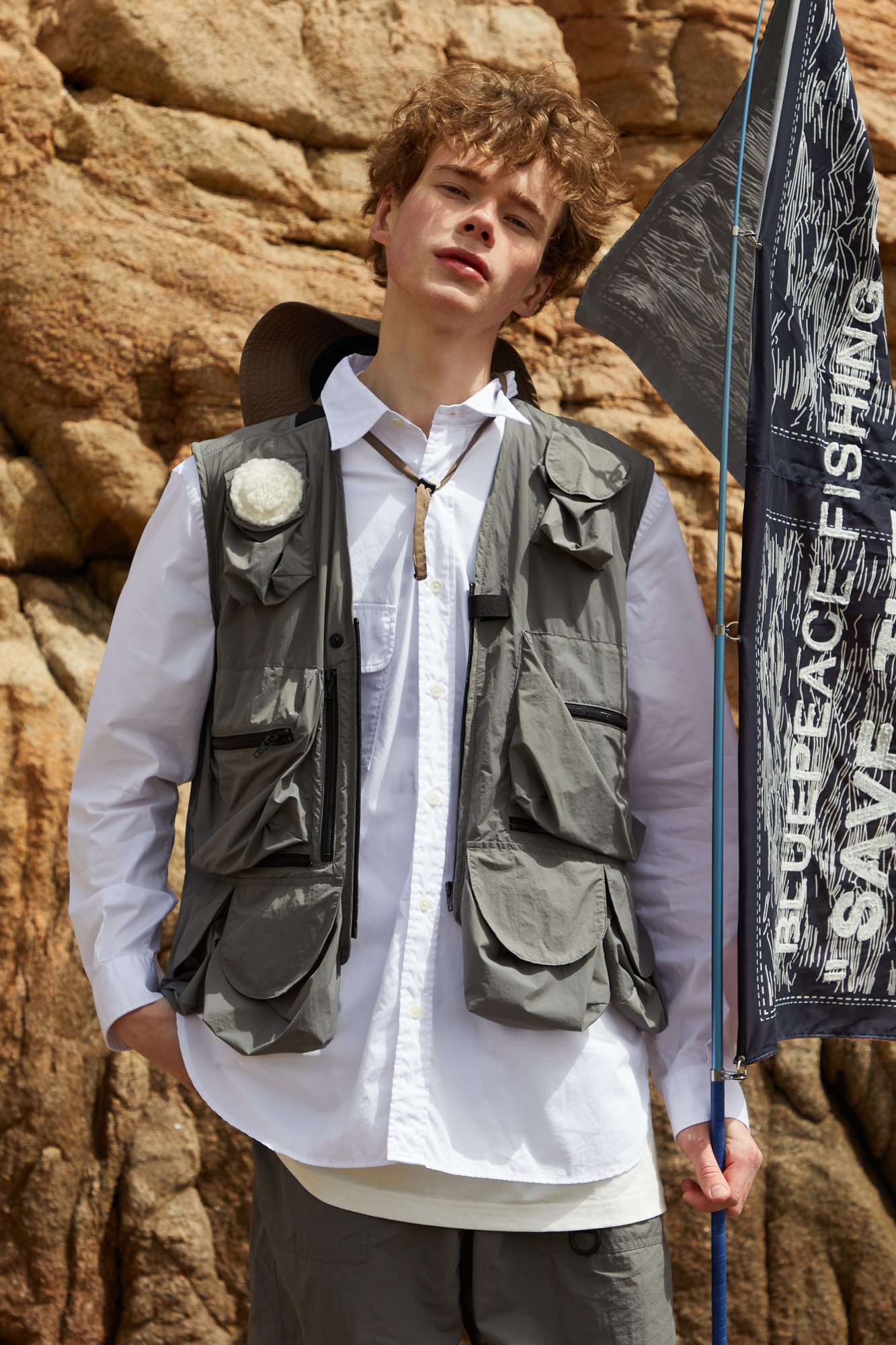 ‘BLUE PEACE FISHING CLUB(블루 피스 피싱 클럽)’은 건전한 낚시 동호회를 위장하여 잠입하여 불법 포경꾼들을 추적, 고발하는 집단이라는 콘셉트로 여느 낚시꾼들 혹은 어류 업계 종사 속에서 들키지 않을 수 있도록 낚시, 어업용 의류의 디테일들을 활용한 것이 특징인 컬렉션입니다.